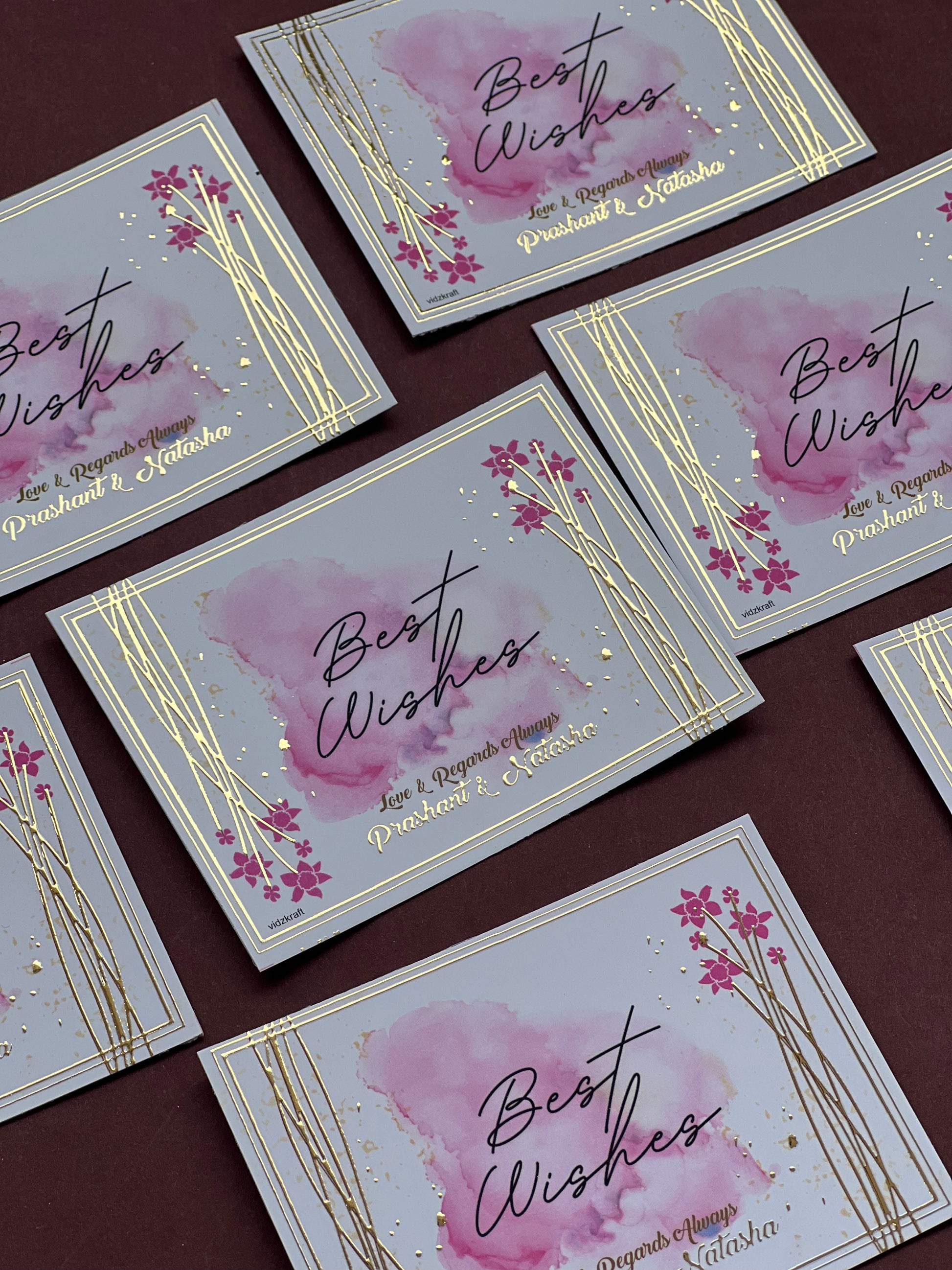 - Gold foiled text with velvet-textured paper for a premium, luxurious feel