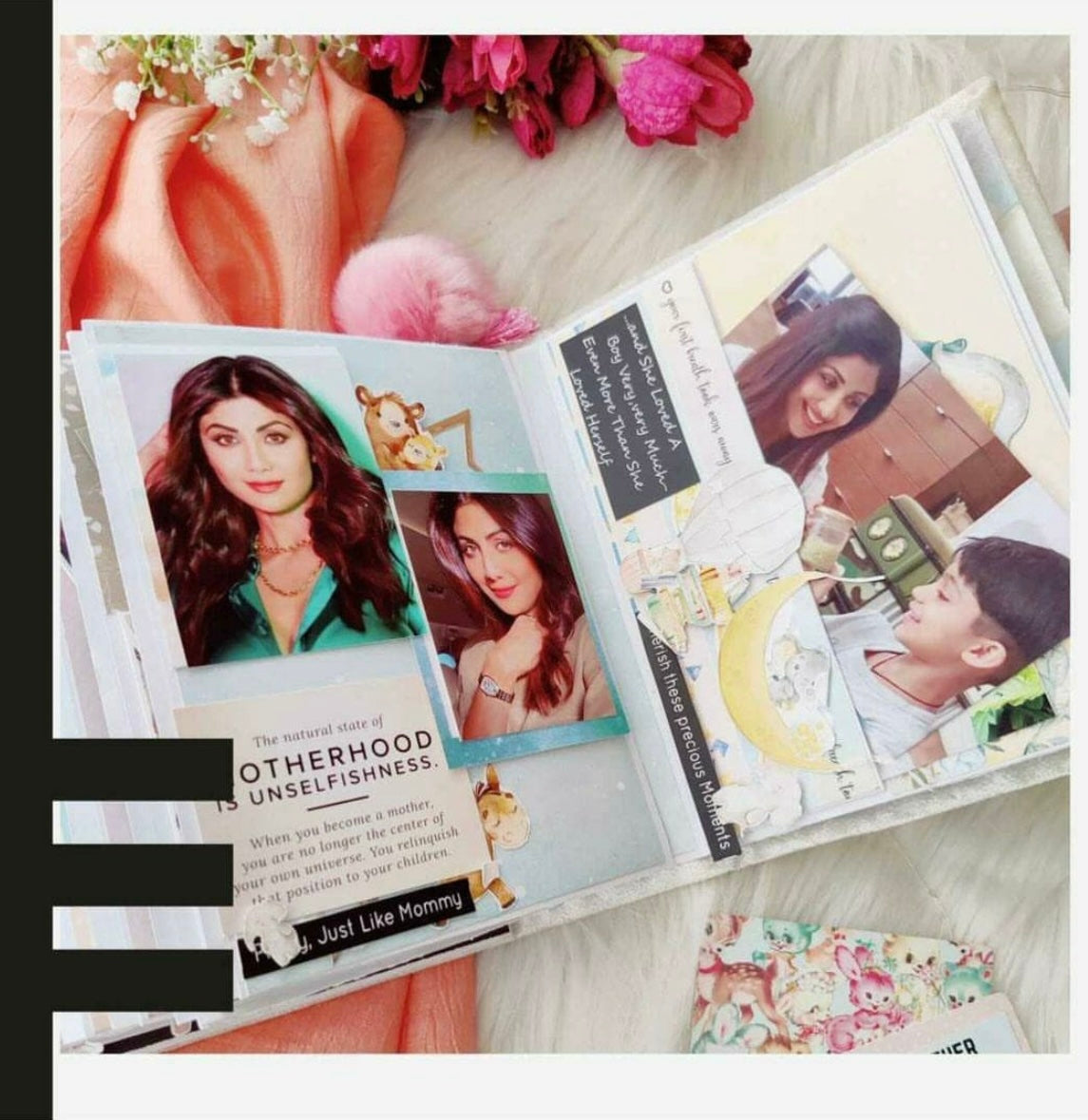 - Receive a beautifully handmade album designed with fun layouts and meaningful quotes.