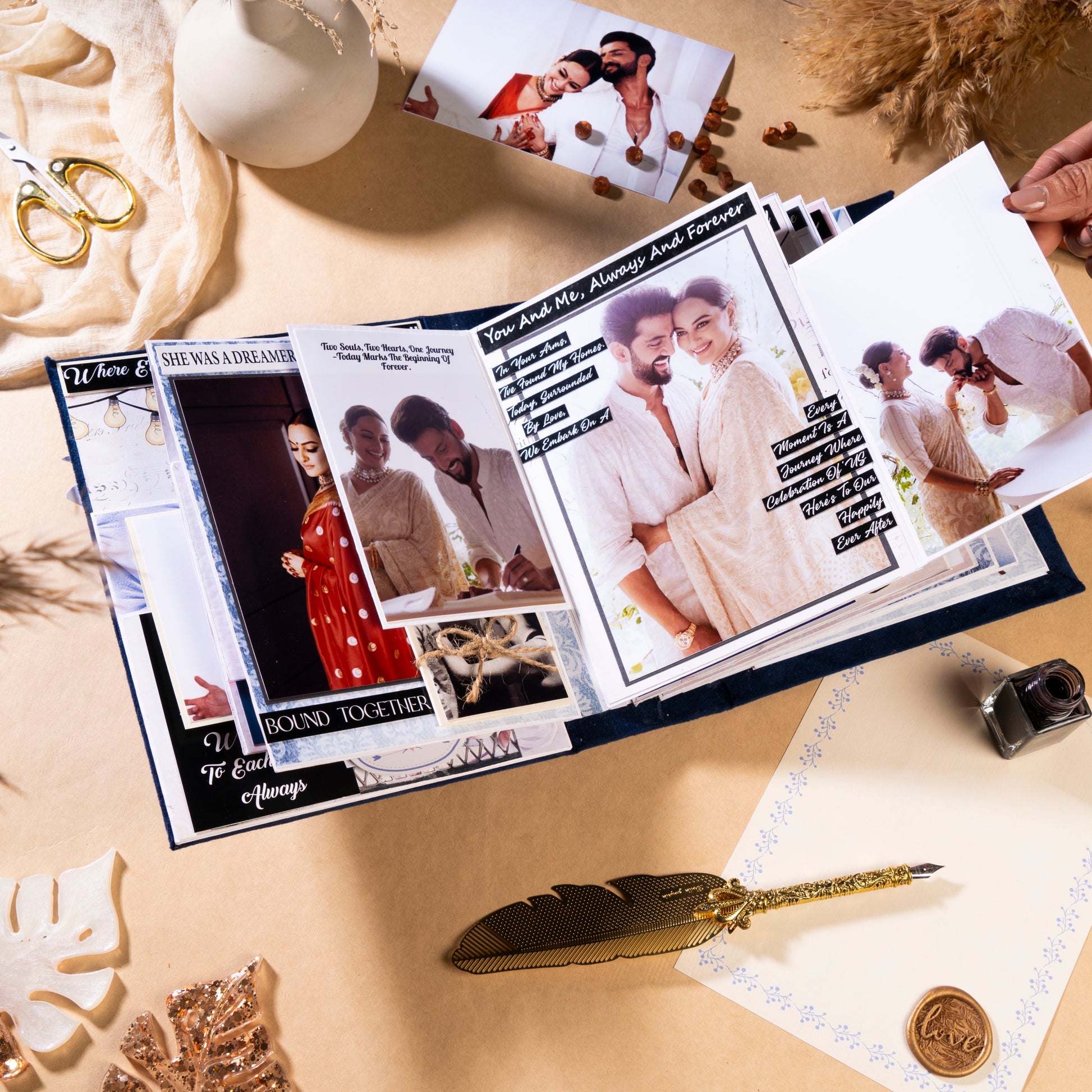 - Receive a beautifully handmade album designed with elegant layouts and thoughtful quotes.