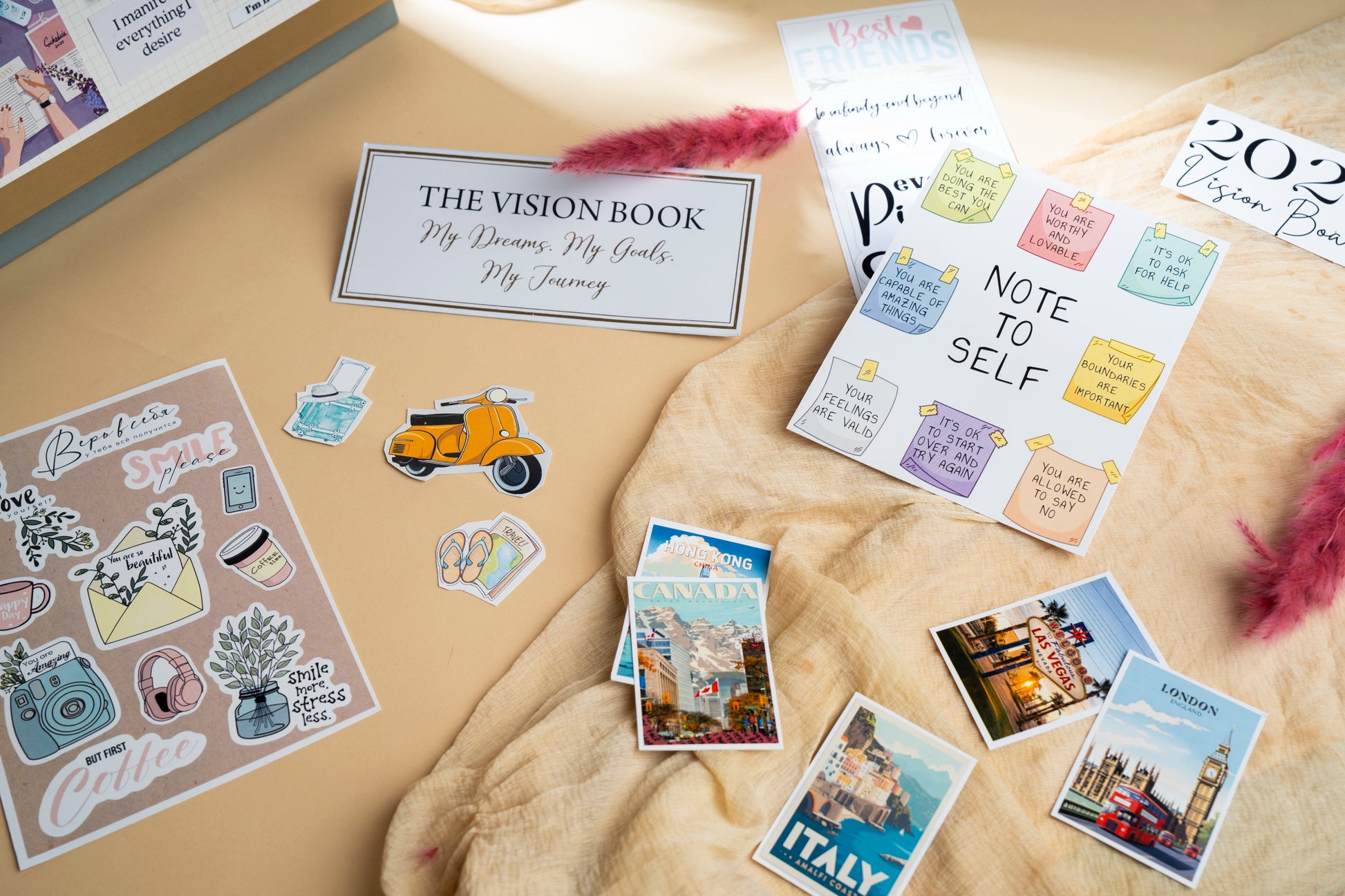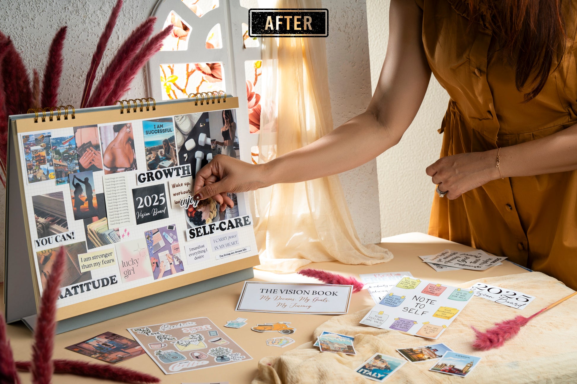 - Pick a category or goal → cut, paste, and decorate your vision board page.