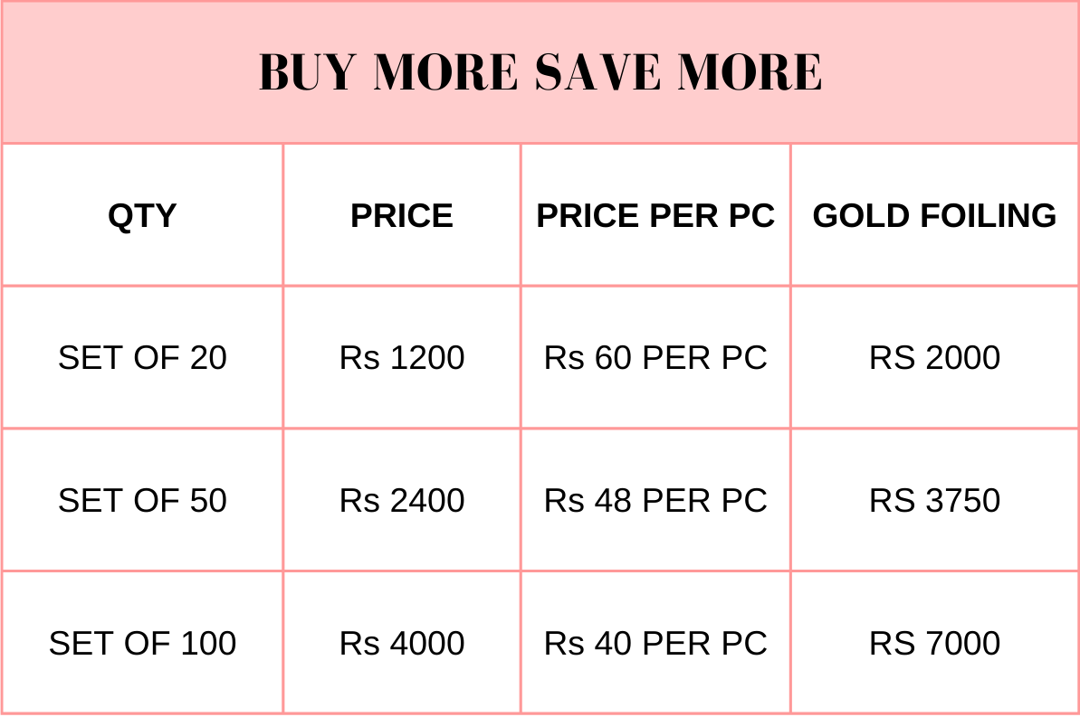 - If you choose gold foiling, the design with the foiling placement will be sent to you via WhatsApp for your approval before finalization.